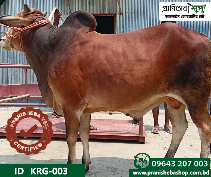 Raised in a completely organic way in the remote rural environment of Kurigram. This bull has been fattened in a natural way without applying any harmful chemicals or injections. Raw grass, mustard oil cake, bran, etc were the daily food of this bull. The bulls have been fed by the farmer with the grass produced by praniSheba’s management. A full-time veterinarian is involved in the supervision of nursing and care.