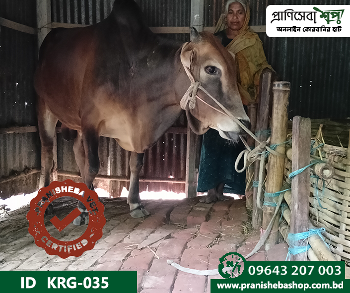 Raised in a completely organic way in the remote rural environment of Kurigram. This bull has been fattened in a natural way without applying any harmful chemicals or injections. Raw grass, mustard oil cake, bran, etc were the daily food of this bull. The bulls have been fed by the farmer with the grass produced by praniSheba’s management. A full-time veterinarian is involved in the supervision of nursing and care.