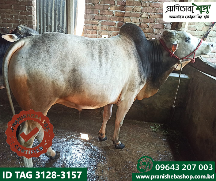 Raised in a completely organic way in the remote rural environment of Tebunia. This bull has been fattened in a natural way without applying any harmful chemicals or injections. Raw grass, mustard oil cake, bran, etc were the daily food of this bull. The bulls have been fed by the farmer with the grass produced by praniSheba’s management. A full-time veterinarian is involved in the supervision of nursing and care.