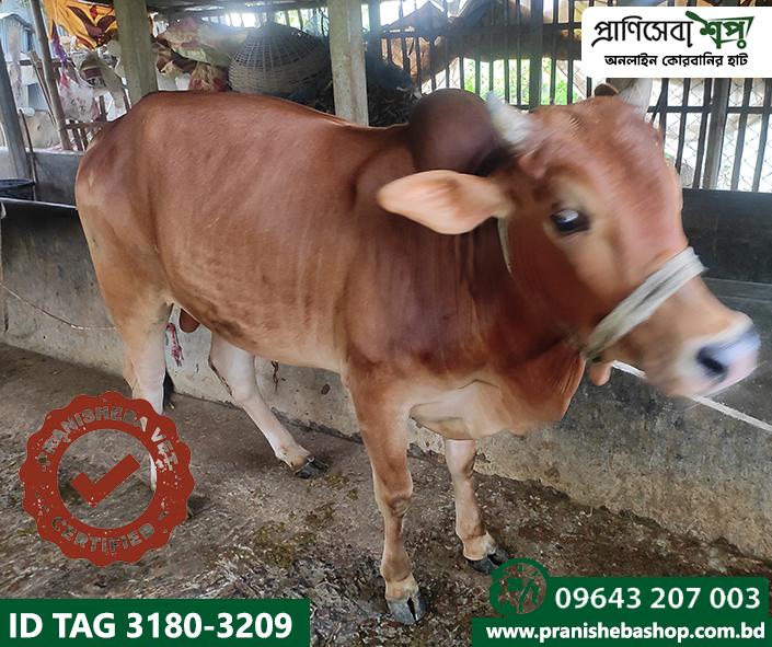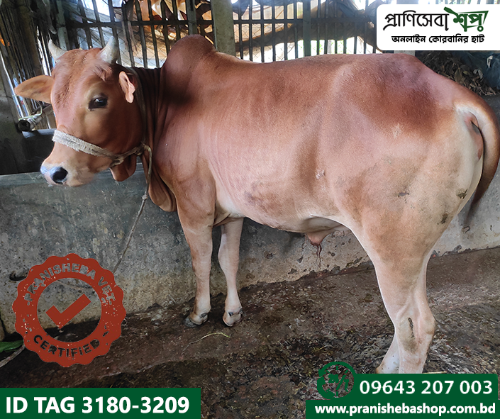 Raised in a completely organic way in the remote rural environment of Tebunia. This bull has been fattened in a natural way without applying any harmful chemicals or injections. Raw grass, mustard oil cake, bran, etc were the daily food of this bull. The bulls have been fed by the farmer with the grass produced by praniSheba’s management. A full-time veterinarian is involved in the supervision of nursing and care.