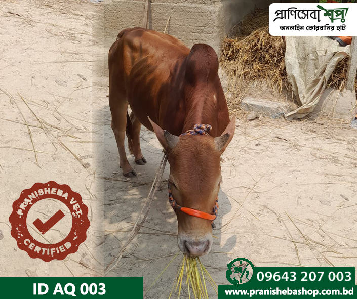 Raised in a completely organic way in the remote rural environment of Gazipur. This bull has been fattened in a natural way without applying any harmful chemicals or injections. Raw grass, mustard oil cake, bran, etc were the daily food of this bull. The bulls have been fed by the farmer with the grass produced by praniSheba’s management. A full-time veterinarian is involved in the supervision of nursing and care.