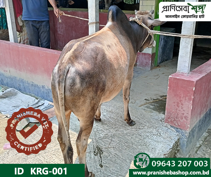 Raised in a completely organic way in the remote rural environment of Kurigram. This bull has been fattened in a natural way without applying any harmful chemicals or injections. Raw grass, mustard oil cake, bran, etc were the daily food of this bull. The bulls have been fed by the farmer with the grass produced by praniSheba’s management. A full-time veterinarian is involved in the supervision of nursing and care.