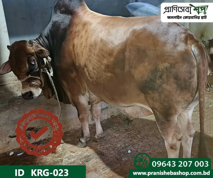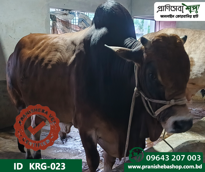Raised in a completely organic way in the remote rural environment of Kurigram. This bull has been fattened in a natural way without applying any harmful chemicals or injections. Raw grass, mustard oil cake, bran, etc were the daily food of this bull. The bulls have been fed by the farmer with the grass produced by praniSheba’s management. A full-time veterinarian is involved in the supervision of nursing and care.