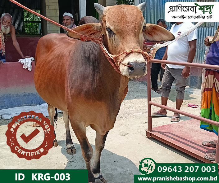 Raised in a completely organic way in the remote rural environment of Kurigram. This bull has been fattened in a natural way without applying any harmful chemicals or injections. Raw grass, mustard oil cake, bran, etc were the daily food of this bull. The bulls have been fed by the farmer with the grass produced by praniSheba’s management. A full-time veterinarian is involved in the supervision of nursing and care.