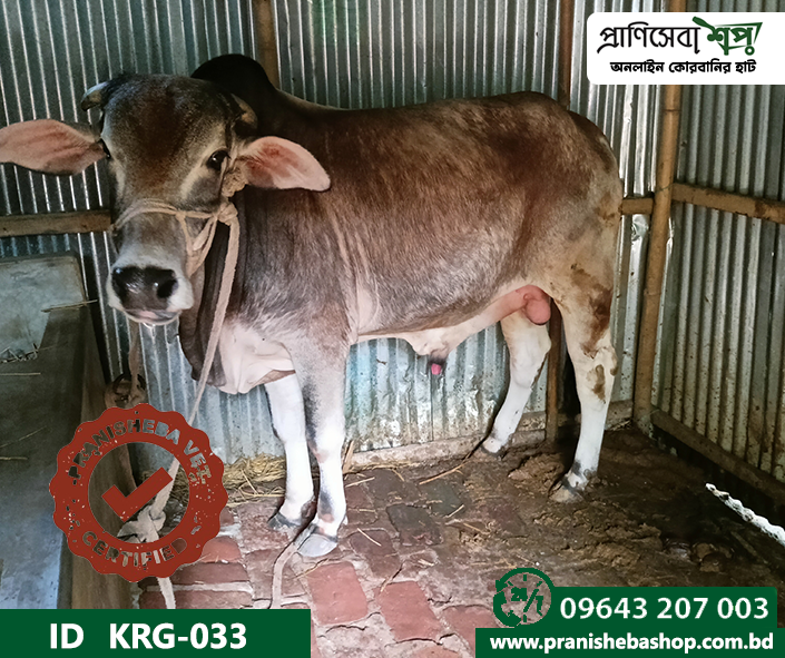 Raised in a completely organic way in the remote rural environment of Kurigram. This bull has been fattened in a natural way without applying any harmful chemicals or injections. Raw grass, mustard oil cake, bran, etc were the daily food of this bull. The bulls have been fed by the farmer with the grass produced by praniSheba’s management. A full-time veterinarian is involved in the supervision of nursing and care.