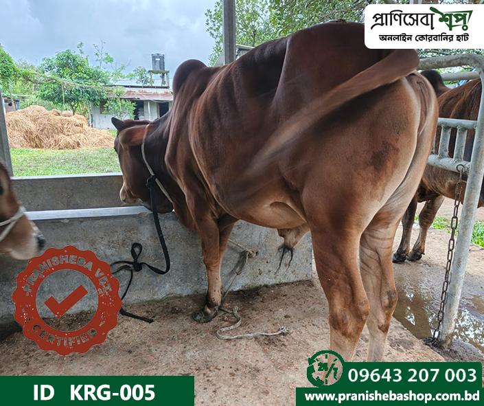 Raised in a completely organic way in the remote rural environment of Kurigram. This bull has been fattened in a natural way without applying any harmful chemicals or injections. Raw grass, mustard oil cake, bran, etc were the daily food of this bull. The bulls have been fed by the farmer with the grass produced by praniSheba’s management. A full-time veterinarian is involved in the supervision of nursing and care.
