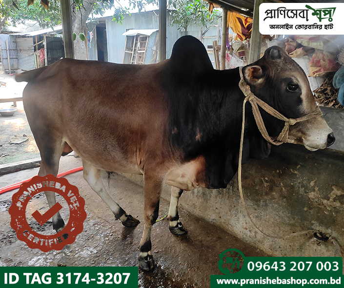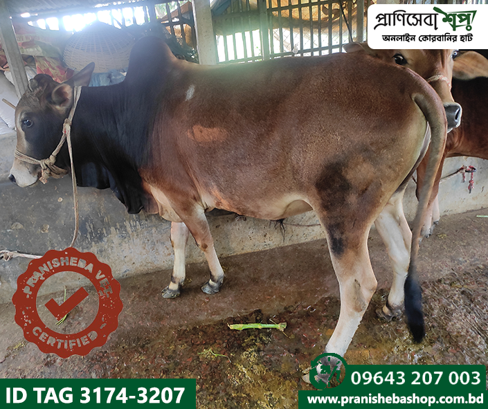 Raised in a completely organic way in the remote rural environment of Tebunia. This bull has been fattened in a natural way without applying any harmful chemicals or injections. Raw grass, mustard oil cake, bran, etc were the daily food of this bull. The bulls have been fed by the farmer with the grass produced by praniSheba’s management. A full-time veterinarian is involved in the supervision of nursing and care.