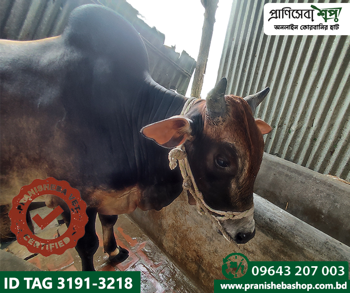 Raised in a completely organic way in the remote rural environment of Tebunia. This bull has been fattened in a natural way without applying any harmful chemicals or injections. Raw grass, mustard oil cake, bran, etc were the daily food of this bull. The bulls have been fed by the farmer with the grass produced by praniSheba’s management. A full-time veterinarian is involved in the supervision of nursing and care.