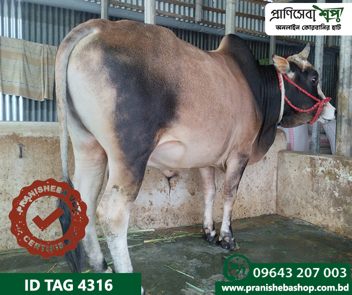 Raised in a completely organic way in the remote rural environment of Shahjadpur. This bull has been fattened in a natural way without applying any harmful chemicals or injections. Raw grass, mustard oil cake, bran, etc were the daily food of this bull. The bulls have been fed by the farmer with the grass produced by praniSheba’s management. A full-time veterinarian is involved in the supervision of nursing and care.
