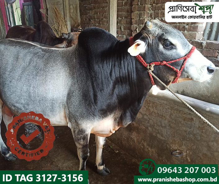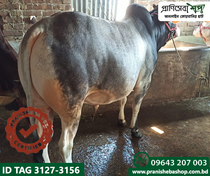 Raised in a completely organic way in the remote rural environment of Tebunia. This bull has been fattened in a natural way without applying any harmful chemicals or injections. Raw grass, mustard oil cake, bran, etc were the daily food of this bull. The bulls have been fed by the farmer with the grass produced by praniSheba’s management. A full-time veterinarian is involved in the supervision of nursing and care.
