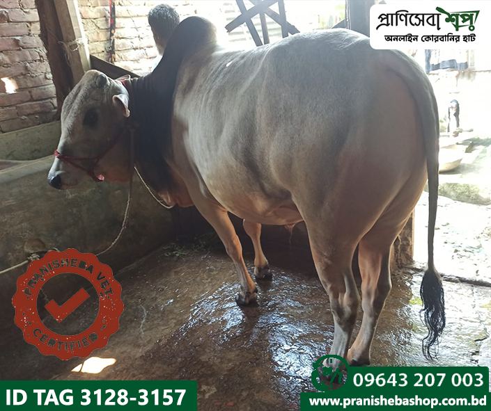 Raised in a completely organic way in the remote rural environment of Tebunia. This bull has been fattened in a natural way without applying any harmful chemicals or injections. Raw grass, mustard oil cake, bran, etc were the daily food of this bull. The bulls have been fed by the farmer with the grass produced by praniSheba’s management. A full-time veterinarian is involved in the supervision of nursing and care.