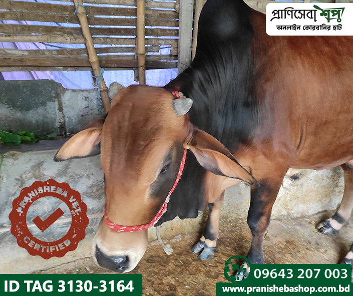 Raised in a completely organic way in the remote rural environment of Tebunia. This bull has been fattened in a natural way without applying any harmful chemicals or injections. Raw grass, mustard oil cake, bran, etc were the daily food of this bull. The bulls have been fed by the farmer with the grass produced by praniSheba’s management. A full-time veterinarian is involved in the supervision of nursing and care.