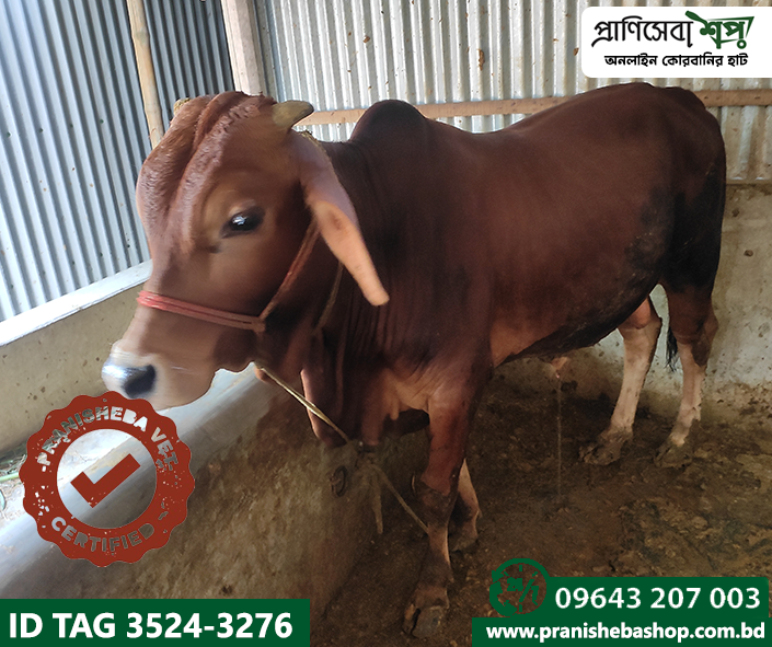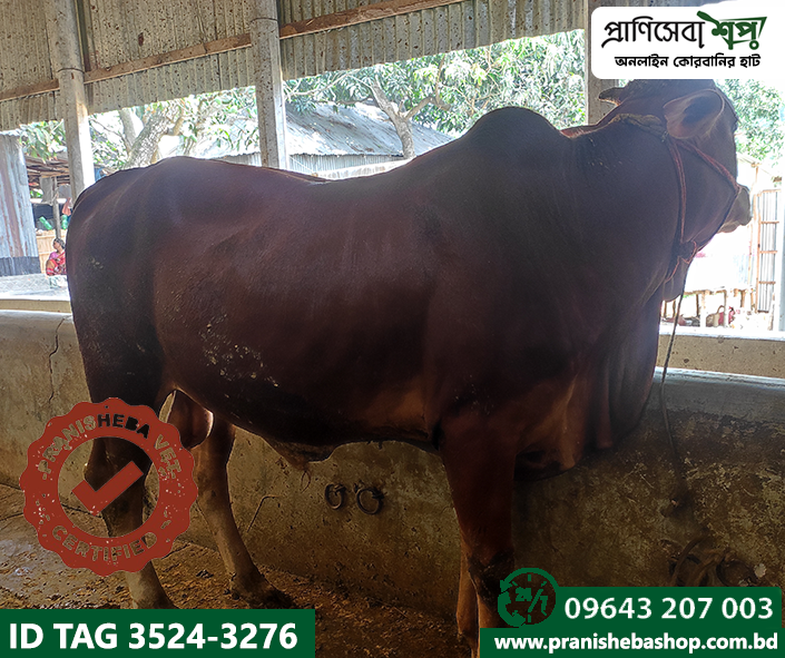 Raised in a completely organic way in the remote rural environment of Tebunia. This bull has been fattened in a natural way without applying any harmful chemicals or injections. Raw grass, mustard oil cake, bran, etc were the daily food of this bull. The bulls have been fed by the farmer with the grass produced by praniSheba’s management. A full-time veterinarian is involved in the supervision of nursing and care.