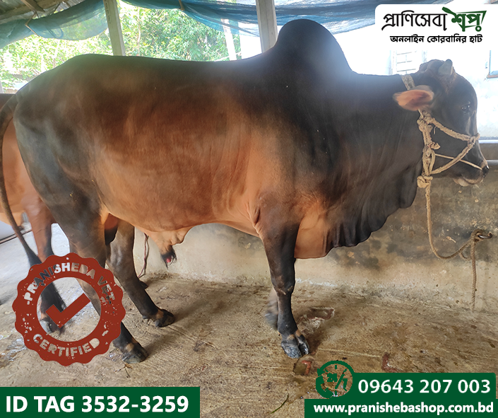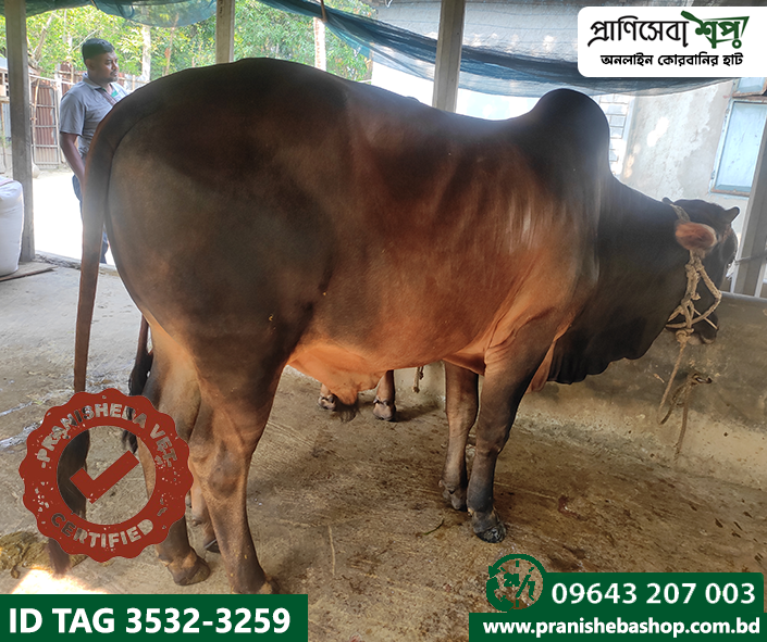 Raised in a completely organic way in the remote rural environment of Tebunia. This bull has been fattened in a natural way without applying any harmful chemicals or injections. Raw grass, mustard oil cake, bran, etc were the daily food of this bull. The bulls have been fed by the farmer with the grass produced by praniSheba’s management. A full-time veterinarian is involved in the supervision of nursing and care.